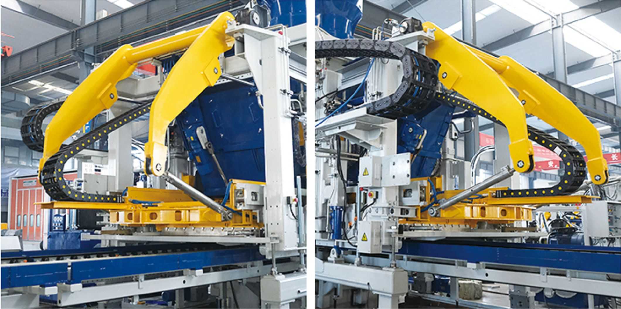 Қабули як навъи бозуи пурқуввати тақсимоти мавод, самаранокии ғизо баланд аст; мошини тақсимоти моддӣ чархи роҳнамоии диаметри калонро қабул мекунад ва роҳи мошинаи моддӣ тарҳи табақчаи ивазшавандаи ба фарсудашавандаро қабул мекунад, ки устувории қавии тақсимоти мавод ва нигоҳдории қулай дорад; платформаи тақсимоти мавод барои нигоҳдории осон тарҳи табақчаи ивазшавандаи тобоварро қабул мекунад. Қисмати ғизоӣ тарҳрезӣ шудааст, ки кушода шавад ва бо қулфи гидравликӣ барои нигоҳдорӣ ва тозакунии осон баста шавад.